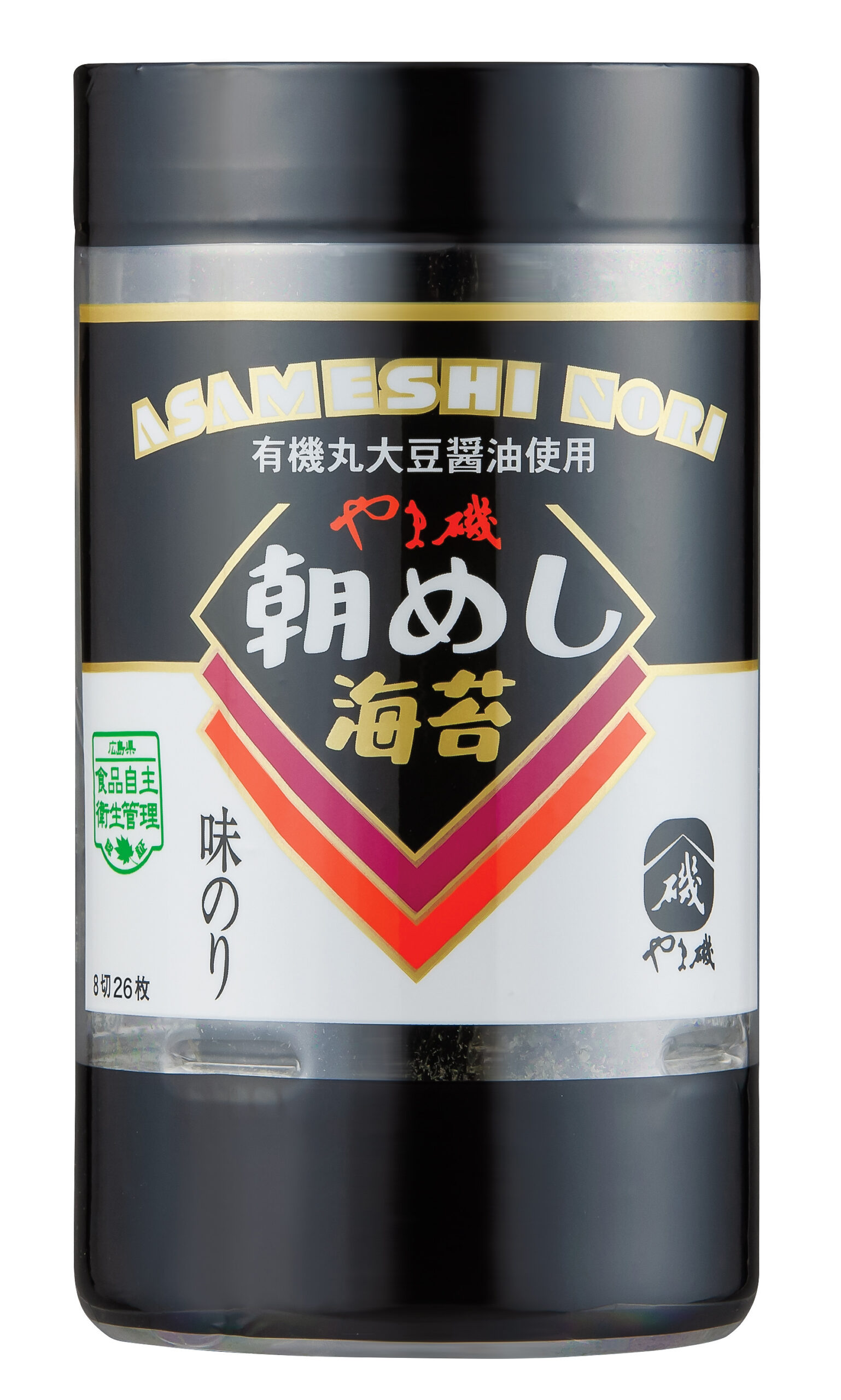 朝めし海苔味カップ / 株式会社やま磯 有機丸大豆醤油使用のたれで調味したコクと旨味のある味付海苔です。必要な枚数だけ取り出せ、保管も簡単なプラスチック製卓上容器入り(業界初) 広島県オンリーワン・ナンバーワン企業