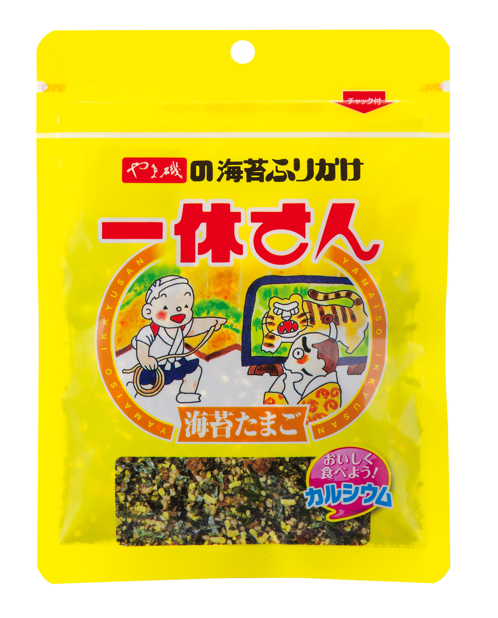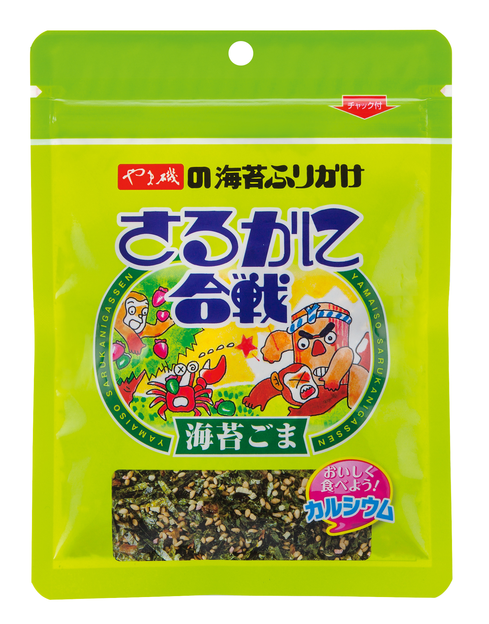 さるかに合戦 / (株)やま磯 自社製造の味付海苔に、香ばしいごま、鰹削り節、えび、昆布などをバランスよく配合したふりかけです。海苔加工を本業とする当社が、1975年に初めてふりかけ製造に取り組んだ製品です。